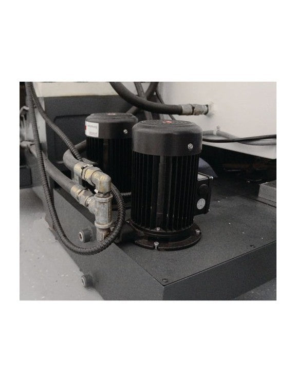 Dispositivo de taladrina con depósito de refrigerante de 520 litros y sistema de filtrado de virutas