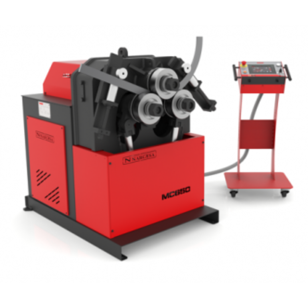 La NUEVA Curvadora de tubos y perfiles MC650 Nargesa está especialmente diseñada para realizar producciones en serie a través del Control, que registra la posición de los rodillos en cada curva para repetir las mismas operaciones posteriormente. Sin el control de posicionamiento longitudinal. Es ideal para fabricar bridas, invernaderos, barandas, grandes estructuras para la construcción... Capacidad máxima de curvado en tubo redondo: 4” pulgadas o 101,6 mm