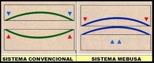 SISTEMA DE PLEGADO MEBUSA-PROMECAM es el resultado de más de 50 años de experiencia en la fabricación de máquinas de plegado de precisión. Permite obtener acabados perfectos gracias a su único sistema de empuje central. El sistema convencional de plegado presenta gran diferencia angular central mientras que el sistema MEBUSA minimiza las deformaciones de los tableros mediante una distribución de los esfuerzos y una compensación parcial con diferencia angular reducida. Sistema de plegado antiflexión Mebusa-Promecam PARALELISMO garantizado mediante sistemas integrales de equilibrado hidráulico:Utillaje universal PROMECAM