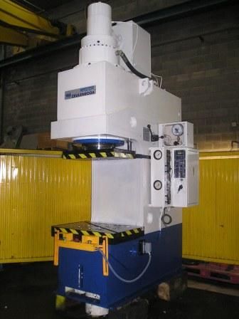 Mesa 900x640mm, recorrido 500mm, escote 350mm, luz 800mm, superficie maza 410x450mm, altura mesa 800mm, cojín de 100Tn, con sello CE, doble velocidad de avance y retroceso. Motor 25Hp. Dimensiones 1,40 x 2,10 x 3,6 m. Peso 9,6Tn
