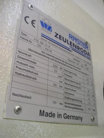 Prensa hidráulica ZEULENRODA PYE-250tn S1-M