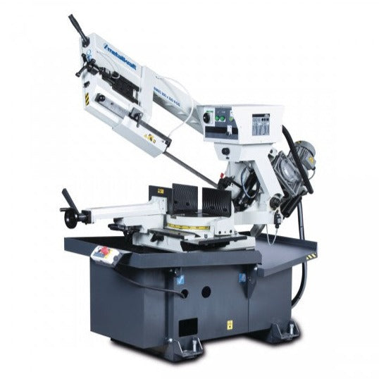 Especial para serrar acero inoxidable, acero para herramientas, perfiles huecos y materiales sólidos, la sierra de cinta BMBS 300X320 H DG también incluye tornillo de banco con dispositivo de liberación rápida manual del material y dispositivo de liberación rápida para el ajuste lateral del tornillo de banco.