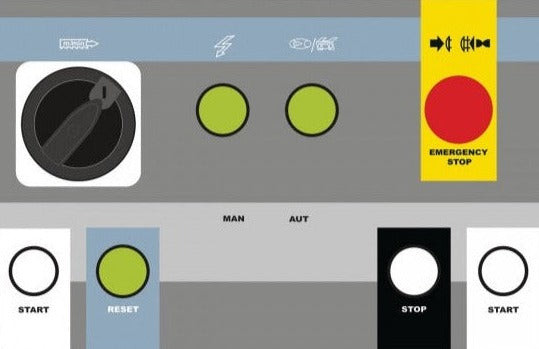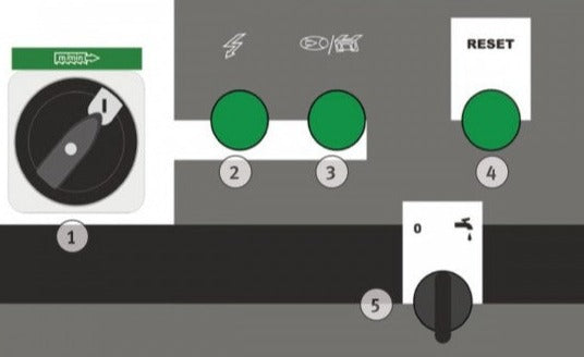 Control remoto con cable para arrancar la máquina y bajar el brazo de la sierra