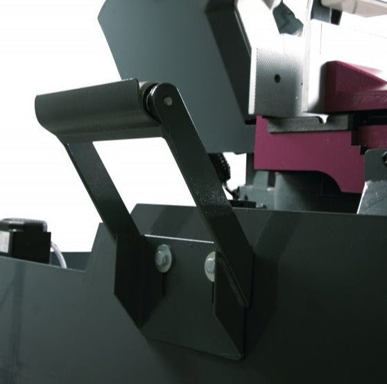 Sierra de cinta para metal de fabricación robusta y maciza. · Funcionamiento silencioso. · Alta precisión de corte gracias al funcionamiento sin vibraciones. · Ajuste de inclinación -45° a 60° girando el arco de la sierra. · Se entrega con sierra bi-metálica de alta calidad. · Micro final de carrera automático. · Bomba de taladrina. · Guía de sierra con rodamiento de bolas y con placas de widia para resultados de corte óptimos. · Ajuste simple de la velocidad de descenso mediante la válvula de control de alimentación en el panel de control. · Mordaza de acción rápida de grandes dimensiones con desplazamiento lateral. · Panel de control frontal.