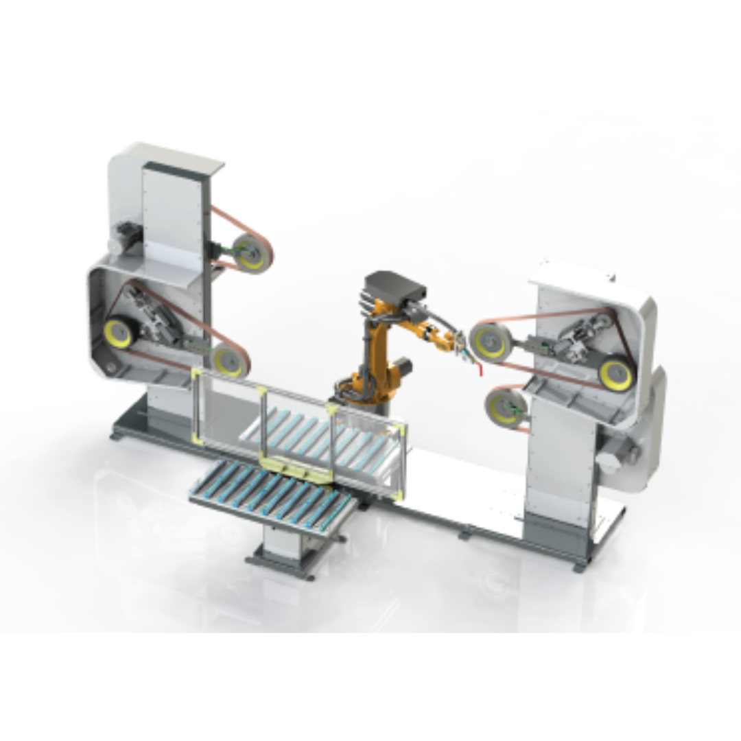 La celda consta de un robot, dos unidades de lijado y pulido.