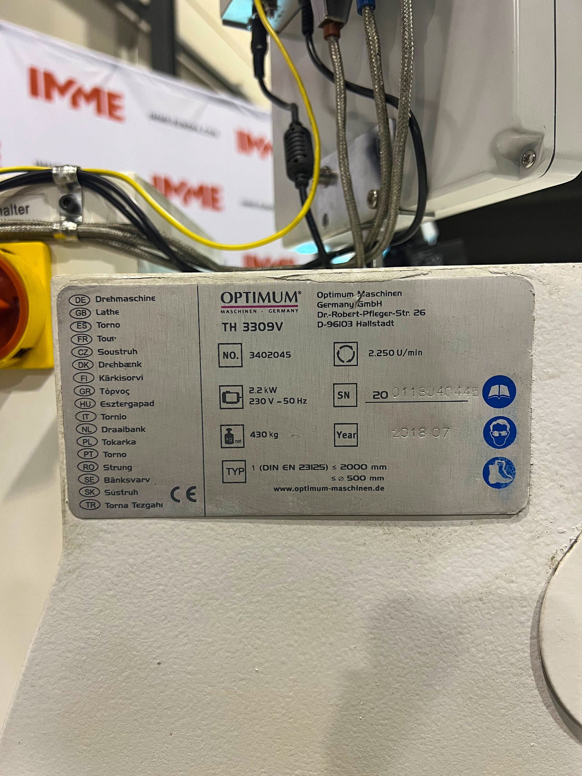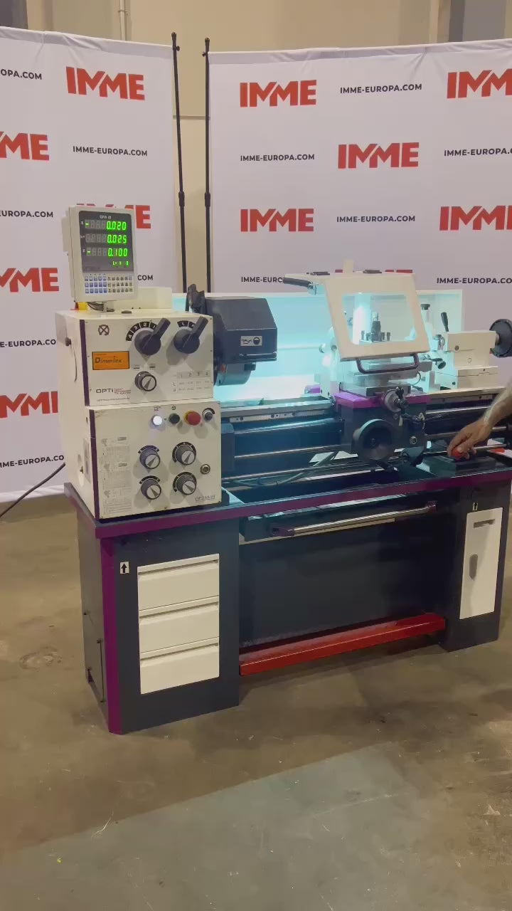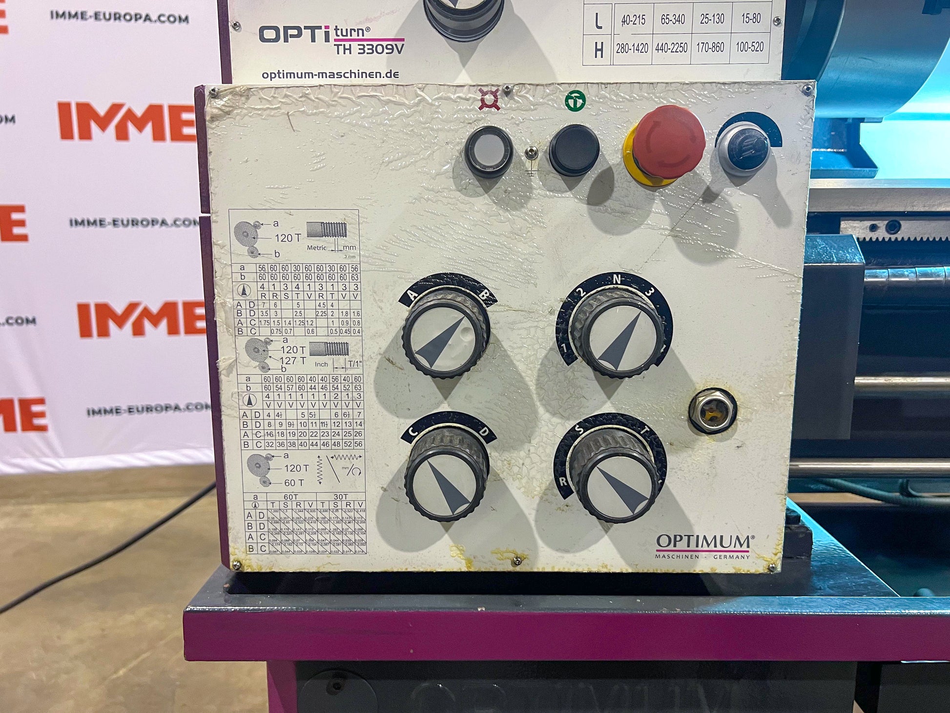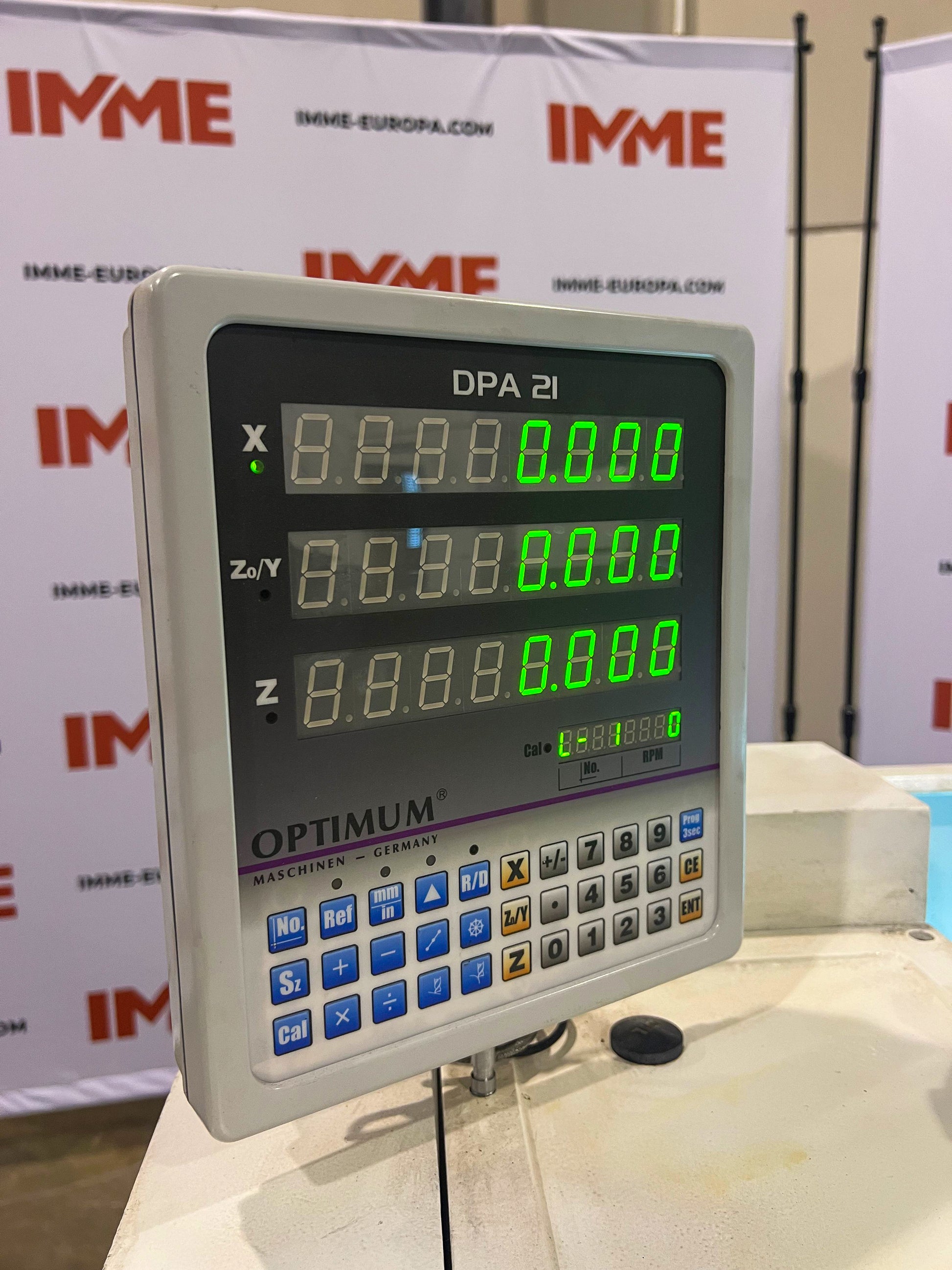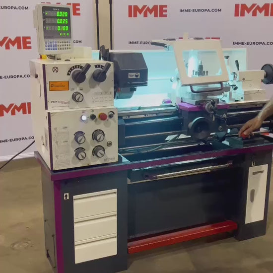 El Torno de Bancada Optimum TH 3309 V, equipado con indicador digital de posición DPA 21 y con control de velocidad variable con motor sin escobillas.