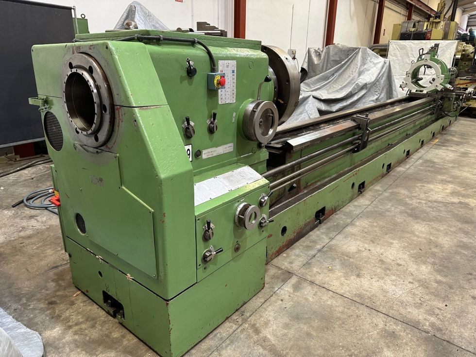 Torno GURUTZPE modelo Super A 8000 /400, de 8000 mm entre puntos, con visualizador de cotas heindenhain, volteo sobre bancada 820mm, volteo sobre escote 1150mm, sobre carro 550mm, diámetro de la caña 250 mm, 16 velocidades desde 9-500rpm, lleva montado plato universal de tres garras de 600mm y en la parte posterior esta preparado para montar un segundo plato. Tiene 3 lunetas fijas.